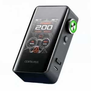 Avec ses 200 W de puissance, la Centaurus BT200 répond aux attentes des vapoteurs en quête de performances. Elle fonctionne avec deux accus 18650 (non inclus) pour garantir autonomie et constance, et dispose d’un port USB-C 5 V/2 A pour une recharge rapide. Bien qu’il soit possible de recharger directement via la box, l’usage d’un chargeur externe est vivement recommandé pour préserver la durée de vie des accus et optimiser leur sécurité.